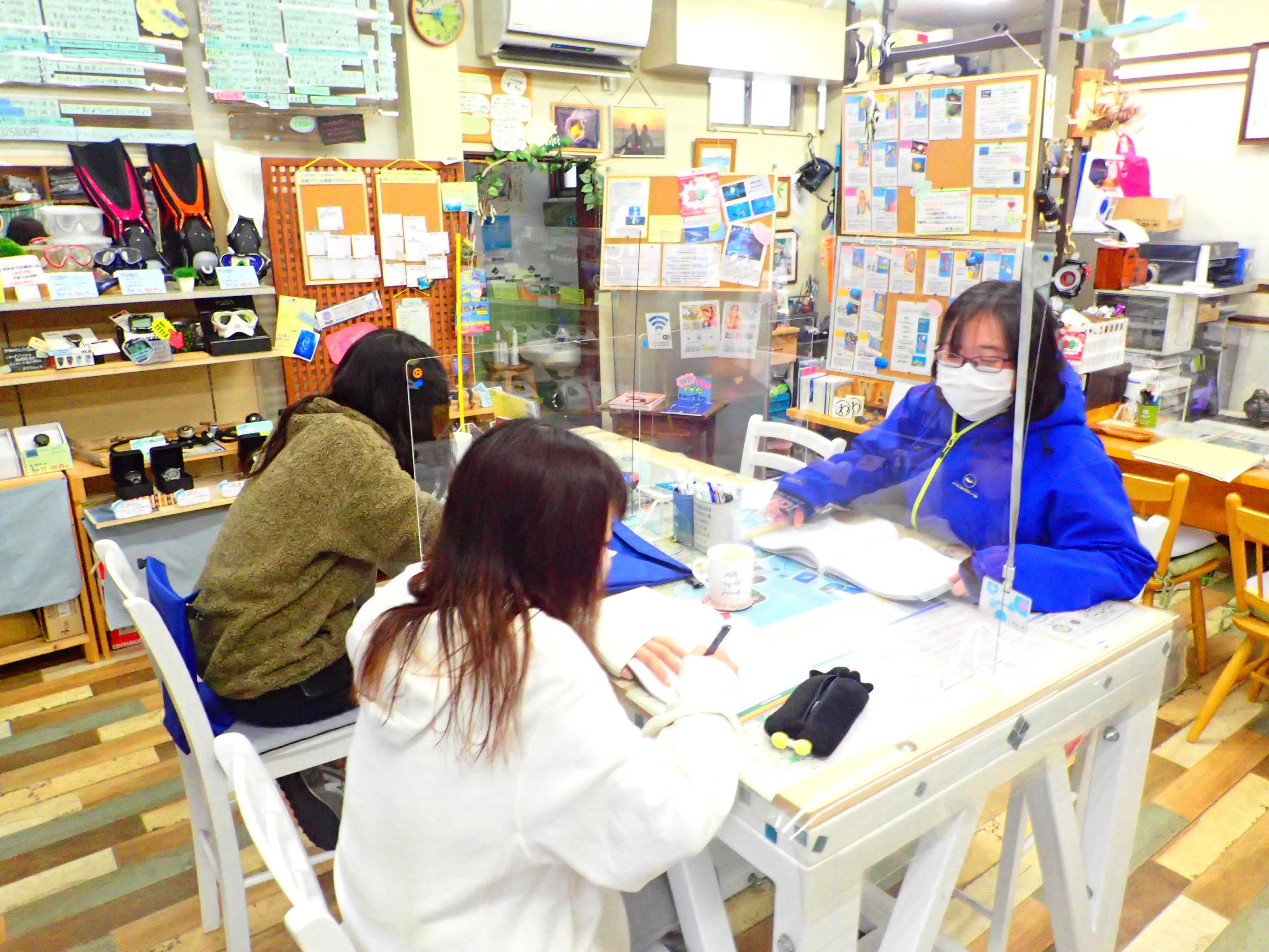 ステップ⑦ 3日目 海洋実習スタート 朝は5時45分頃にご来店頂き、6時に海へ出発します。(目的地により、時間の変動があります。) 実際に海へ行って、プールで練習したスキルを海でやってみましょう。 折角ですから、美味しいご飯も食べて帰りましょう ステップ⑧ 4日目 海洋実習 3日目同様に6時出発です。 4日目は3日目よりスキルUPして、最後には自分たちでダイビングを計画してダイビングを行います。 ステップ⑨ 申請書に記入しよう 4日目帰宅後お店で申請書を記入して、全行程終了となります。 仮カードをもらって、ライセンスカードが届くのをお待ち下さい。 ステップ⑩ ライセンスカードを受け取ろう 申請してから1~2週間でライセンスカードがお店に届きます。 届きましたらご連絡致しますので、お仕事帰りなどに寄っていただけたらお渡し致します。 ライセンスカードを受け取って、ダイバーの仲間入りです! |