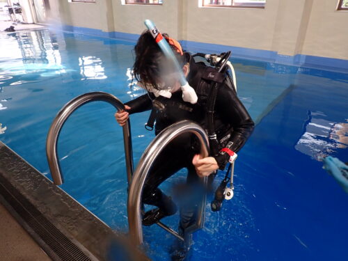 2人一緒に海洋実習をするため、一足先にプールで特訓を開始!