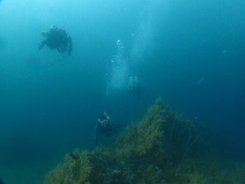 初の深場にドキドキ!耳抜きも緊張で少しゆっくり目に潜行!まさかのサクラダイ♂がわんさかと20mあたりからびっくり(º ロ º๑)!! つがいのゼブラガニも観察しました(^^)