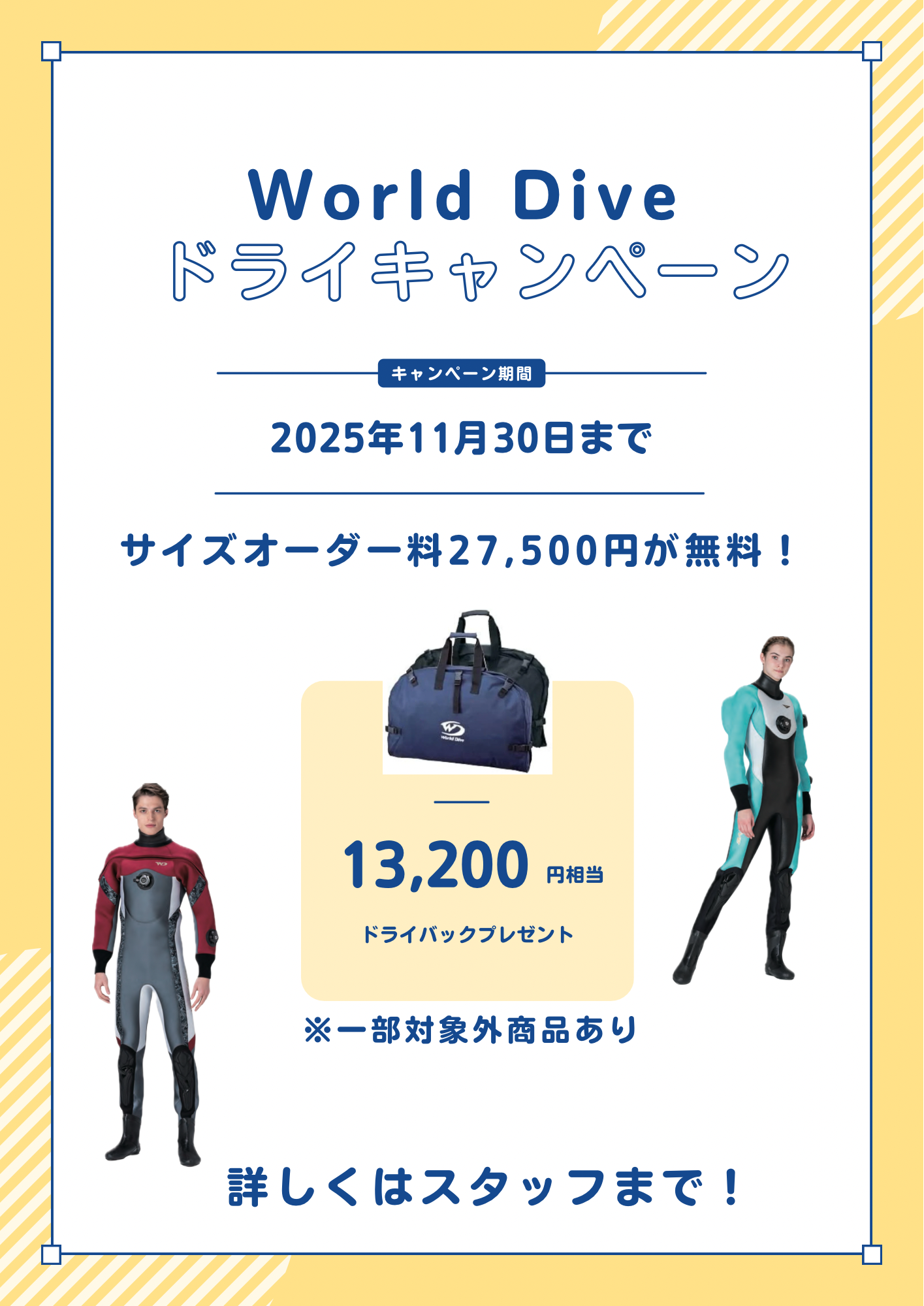 ①ドライスーツフルオーダー無料!(通常 27,500円)