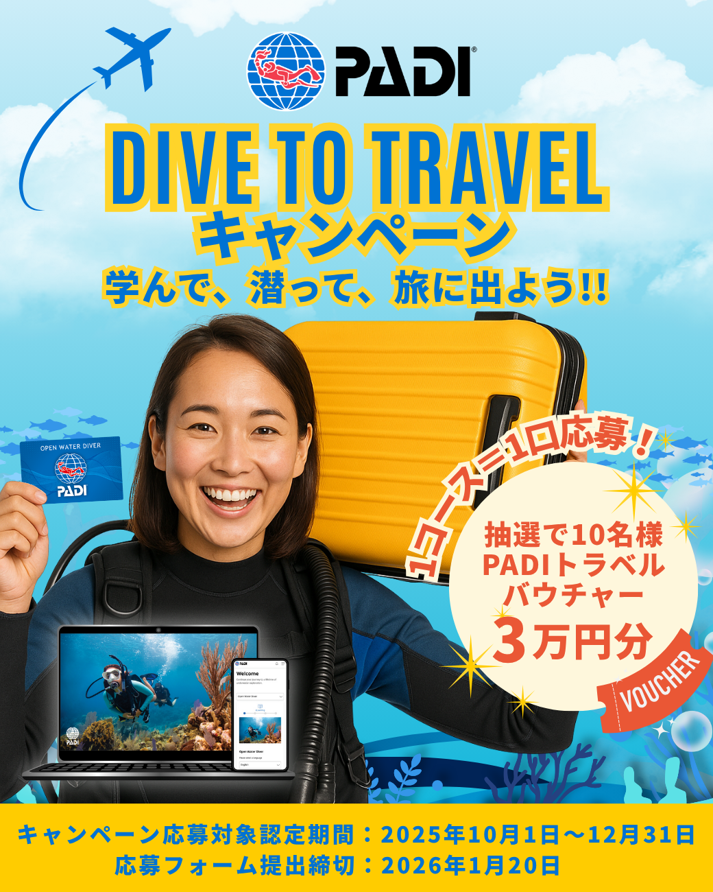 当選者の方には、PADIトラベル(日本)で使える電子バウチャー3万円分をお届けします。