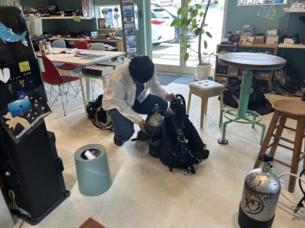 その後に待っているのは器材セッティング!これが出来なきゃダイバーは名乗れないのでね。