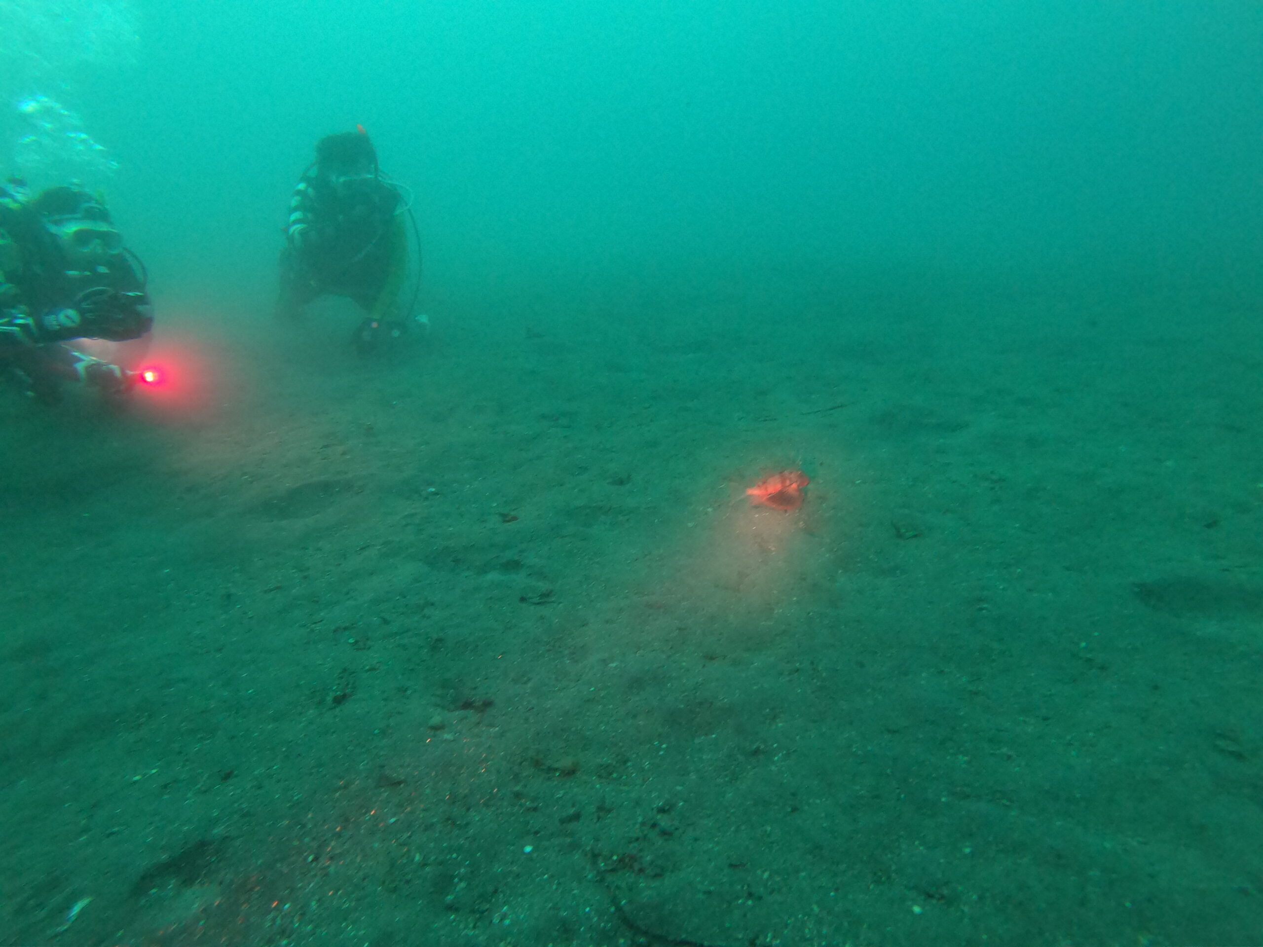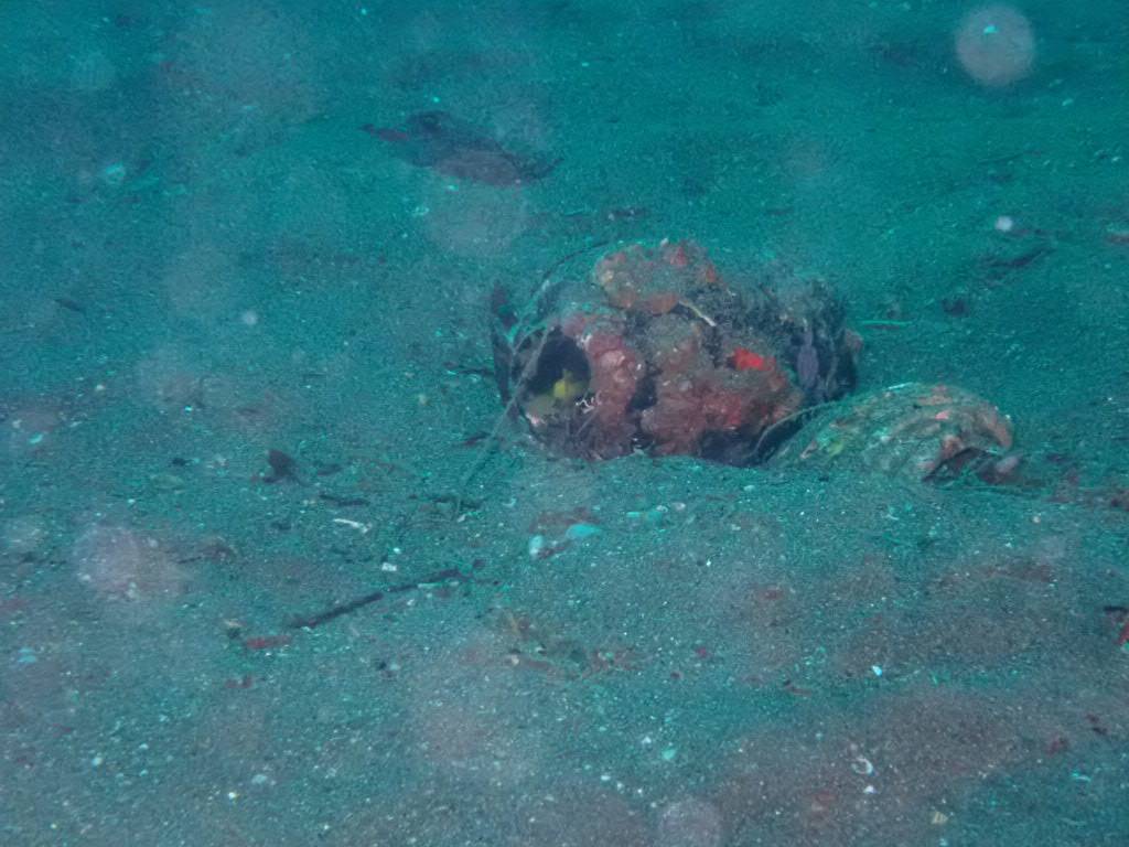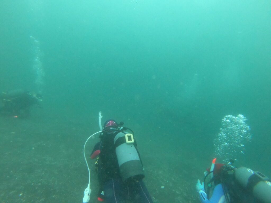 そして、一番深い26mあたりには、瓶を住処にしている真っ黄色な「ミジンベニハゼ」を観察してました!中々皆さんの目には認識しずらかったようです(^_^;