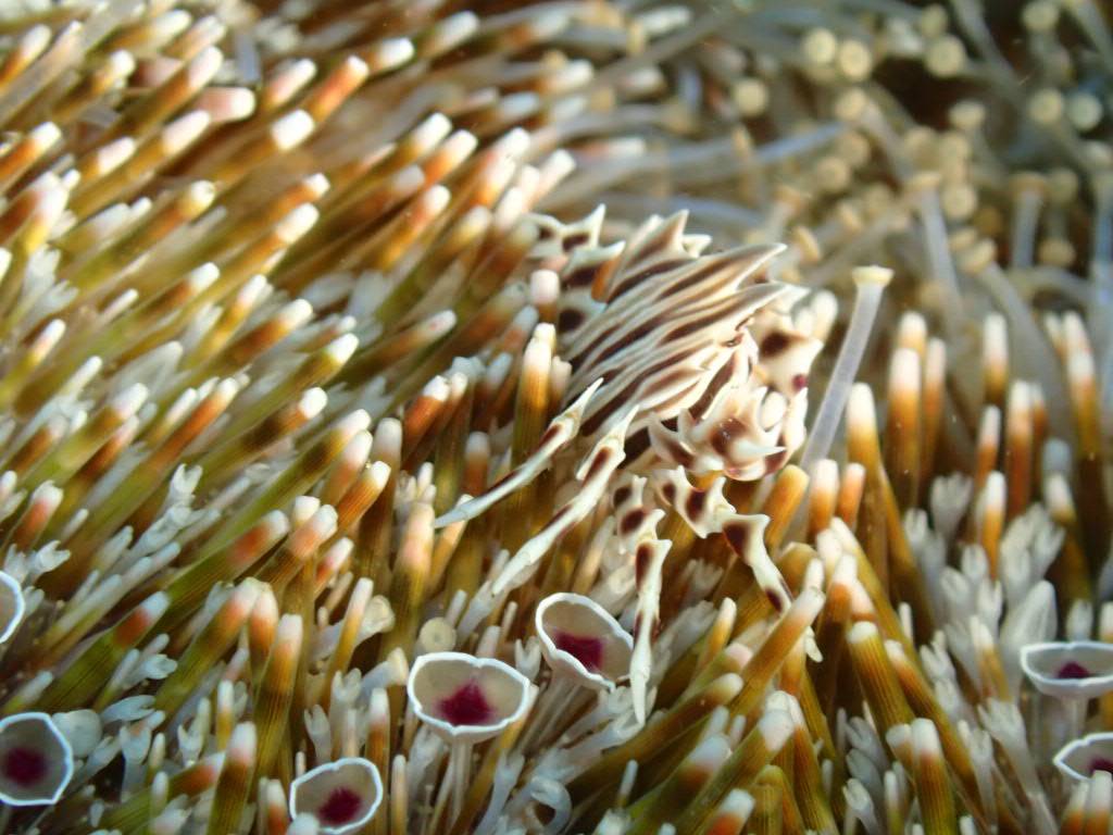 ラッパウニには共生しているゼブラガニも!