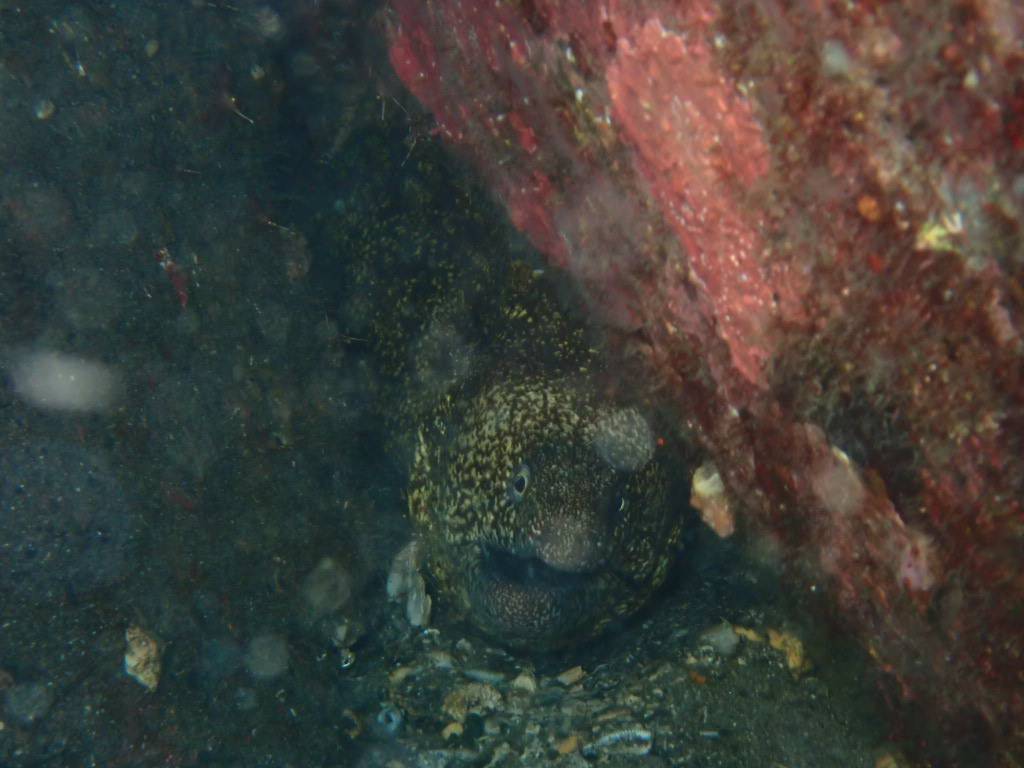 岩の隙間では、ウツボがクリアクリーナーシュリンプのお掃除を受けてました!