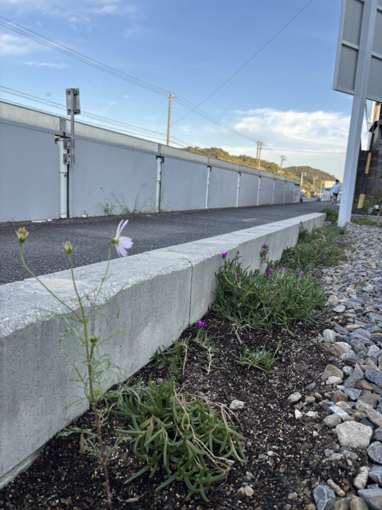 そして、道路の傍を飾ります! ただ名前が分からなかったので調べてみるとマツバギクという名前だそうです。紫の花が綺麗だなぁと思って^ ^