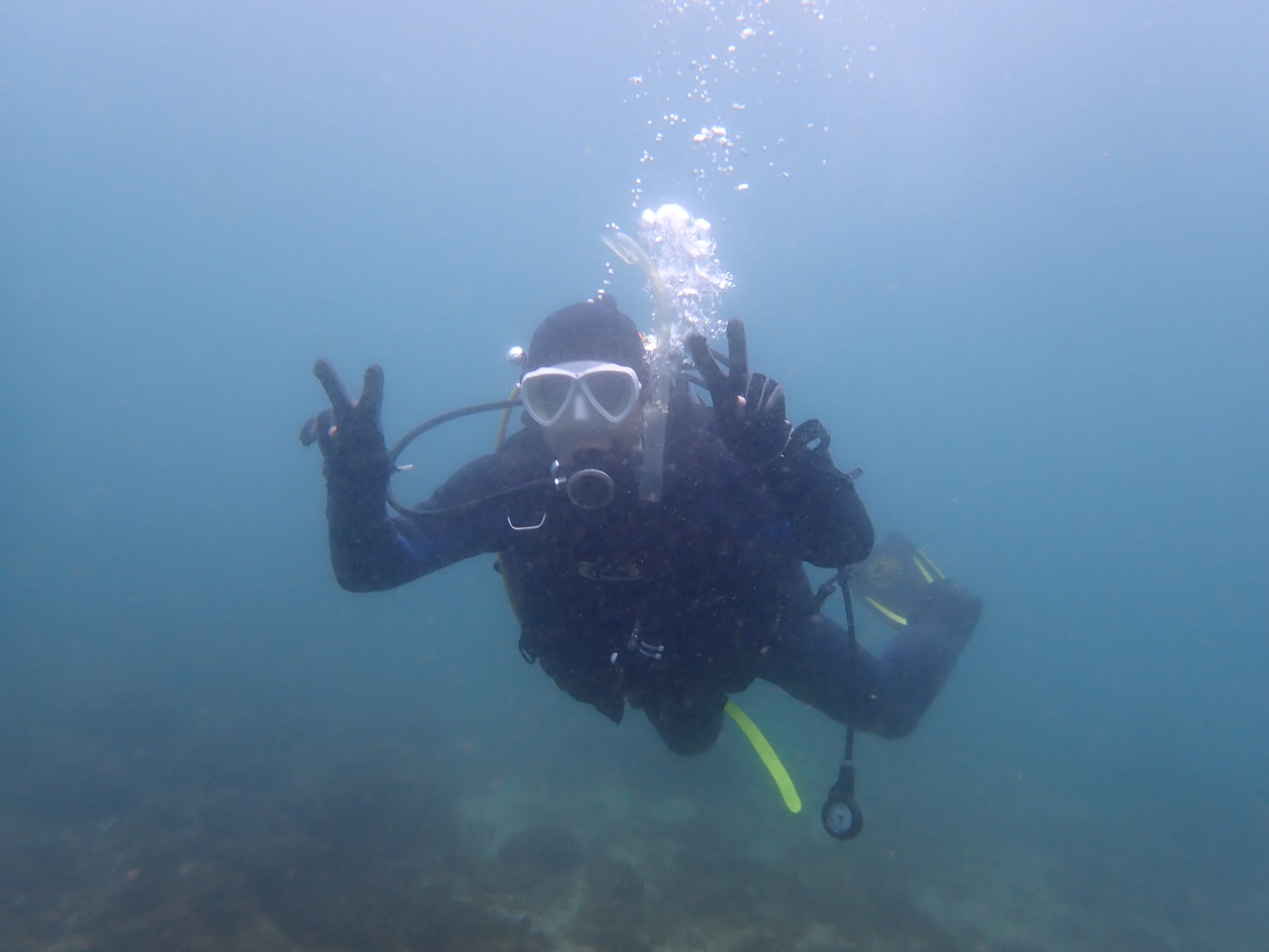 慣れない中性浮力もちょっとコツを掴んでピース(*^^)v
