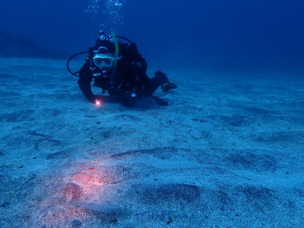 砂地では、大きなヒラメが!ダイバーに慣れているのか中々逃げず...