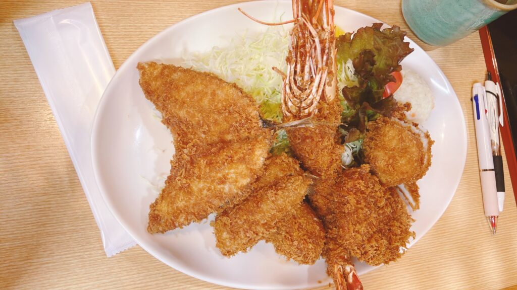 アジフライ・白身魚のフライ・イカフライ・お刺身の定食です!!!