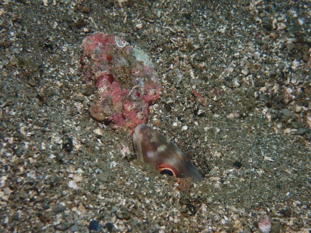 とぼとぼとゆっくりエキジット方面へ帰る途中の砂地でつぶらな瞳の「ハナアナゴ」が顔を覗かせていました!!ホタテウミヘビよりかわいい♡