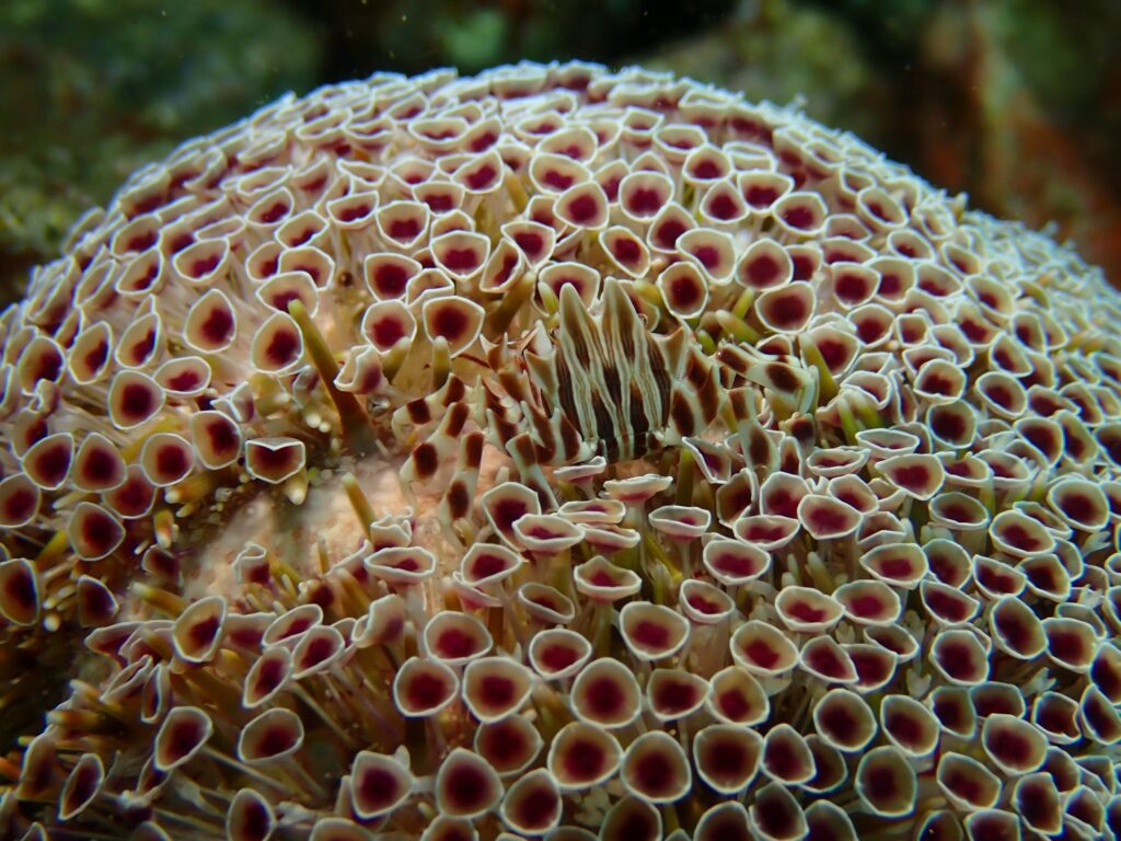 亀裂の入ったラッパウニをひっくり返すと、98%ゼブラガニが居ます!!あとの2%はたまに引っ越ししてしまっている場合があります(^_^;)