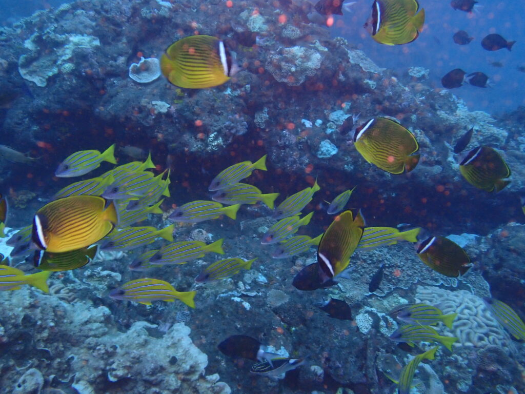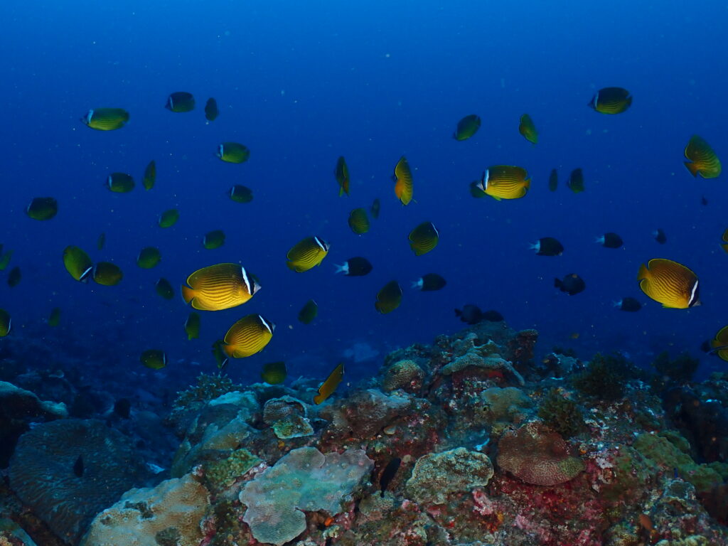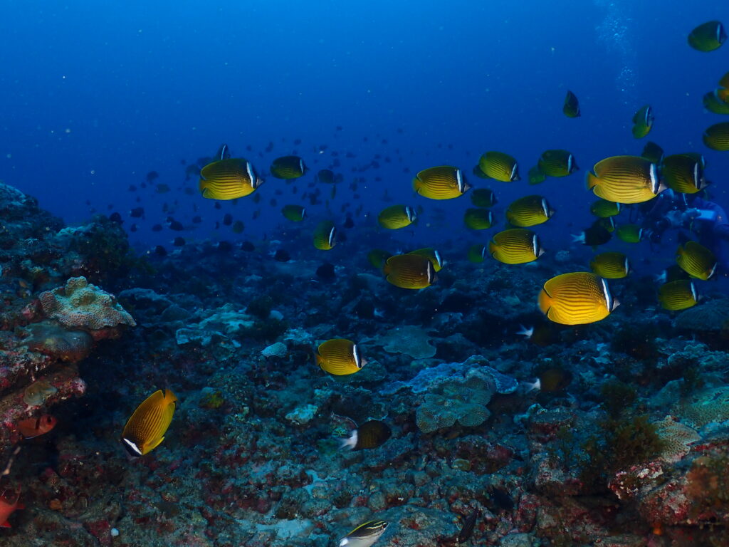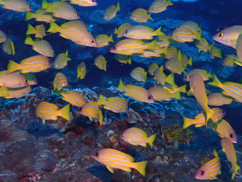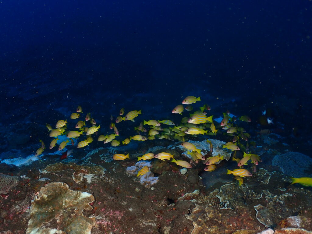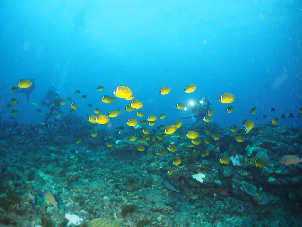 屋久島には黄色いお魚の群れが多いです!青い背景に黄色が映えます!