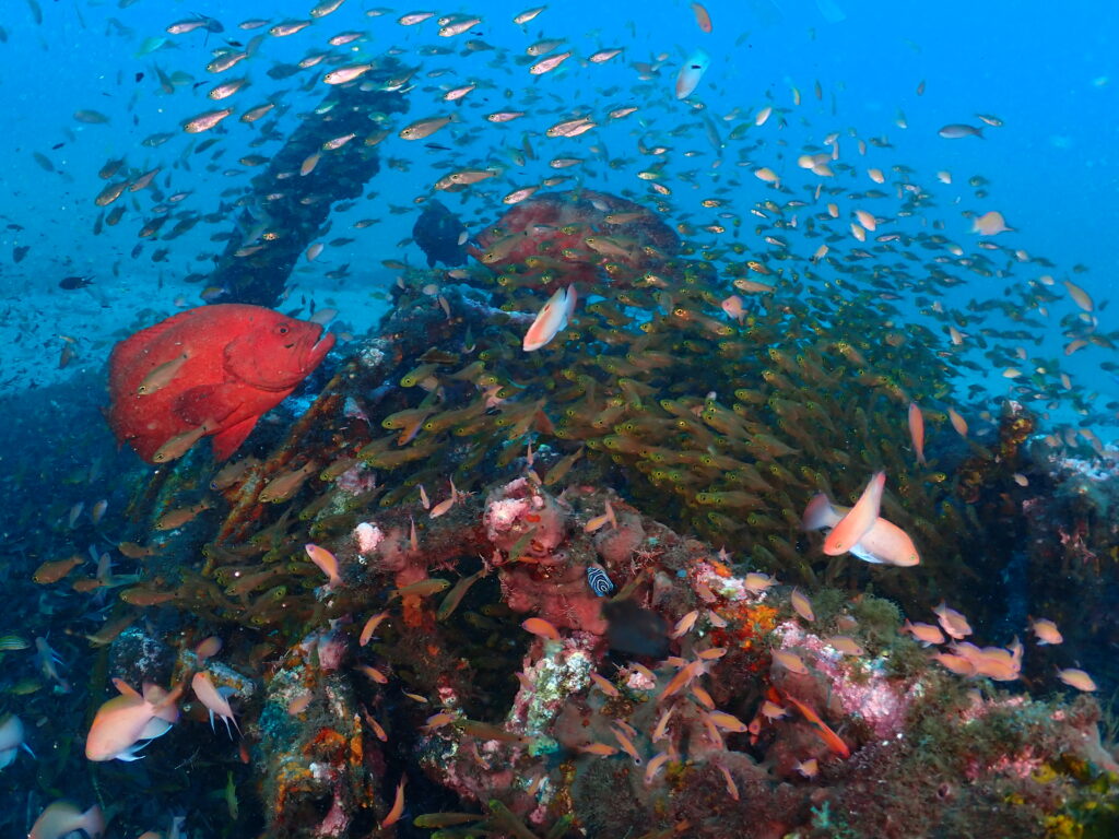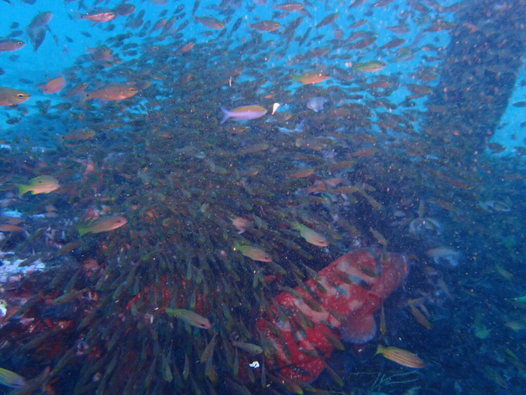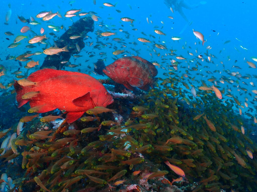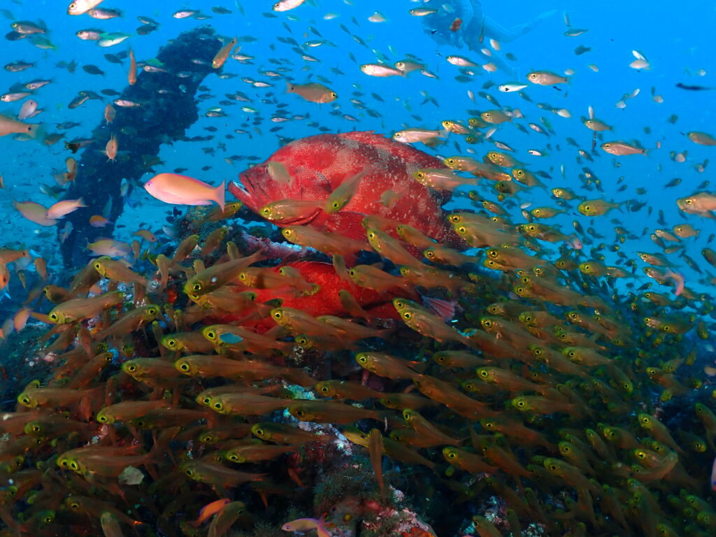 ワイドレンズをつけて寄ってストロボ撮影したゼロ戦の後に生態系を作っているアザハタ達の迫力がなんともすごかった!