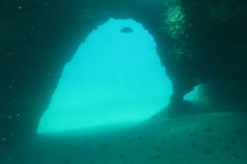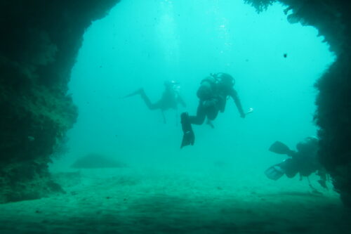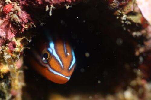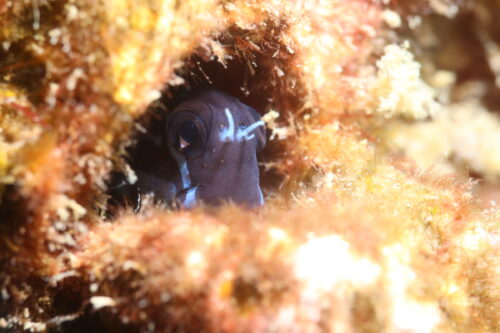 1本目では地形を楽しみつつゆったり泳いでいたら背後から黒い影が!