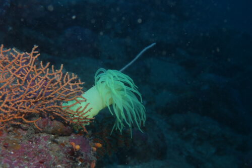 みなべと言えば、水深30m越えた場所にある「オオカワリギンチャク」。遠目からでも分かる、ぼや~っと蛍光色に光ってみえるのが特徴のイソギンチャクですが、年々数を減らしております。