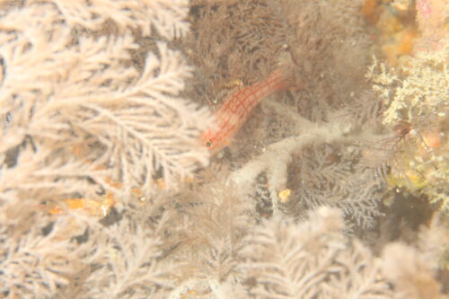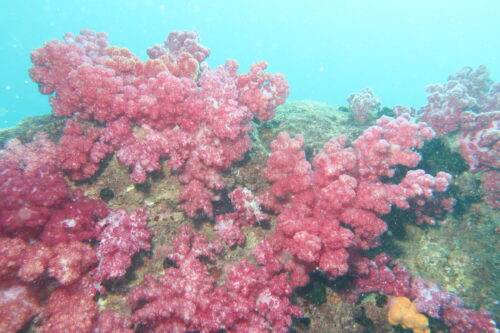 私たちが学生の時に潜ったときはもっとあったし、遠目からでも「あ、あそこに固まってあるわ」って認識できるほどでしたが、今ではぽつんと5個体くらいしかいなくて。