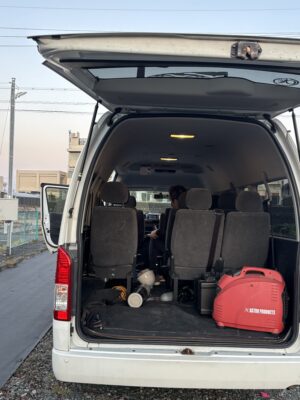 ハイエースにはコンセントが2ヶ所あり、とっても便利です。