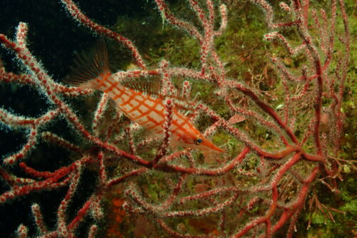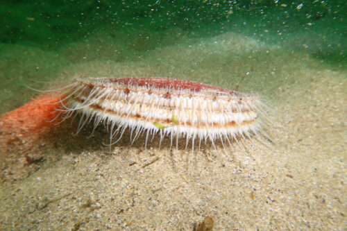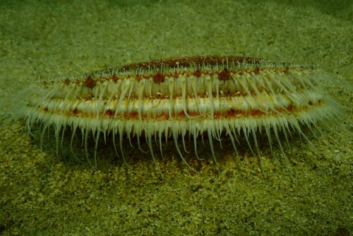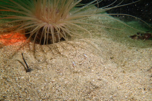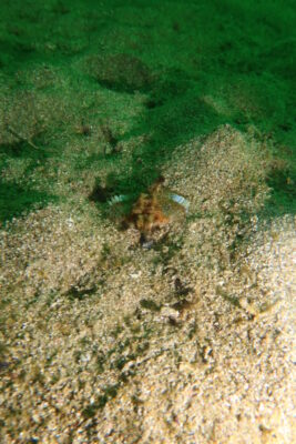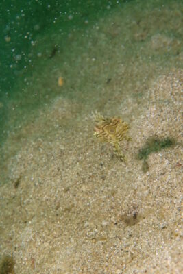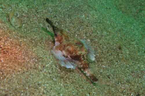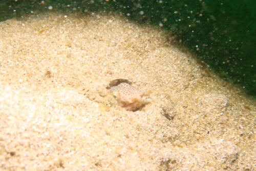 透明度も良くなかったのでより下を向いて探しました。そうすると,砂地の生き物達が目に入ってくるんです。