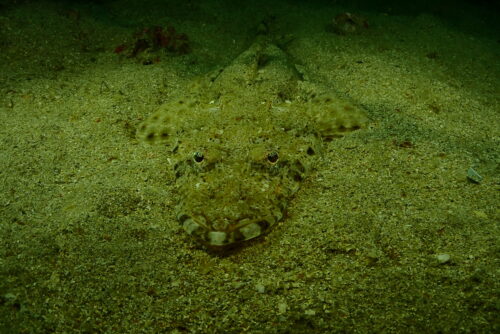 そしてそして、何年かぶりの水温の低下に深海魚を目にする事が各地で今年は多いような気がします。そんななか、、、砂地のメガネウオを捜索中に(#メガネウオは結局見つからなかった)何やら違和感♪