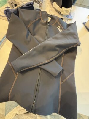 ジャケットのみですが、ウエットの3ミリ相当の暖かさ裏起毛になっていて、リゾートなど使うのにかさばらなくておすすめです。 水着の上にコレありです。