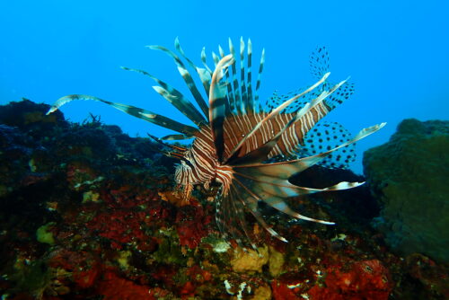 そしてまたまた、ハナミノカサゴ!今度は大きいです!バックの青い海がハナミノカサゴをよりリアルに引き立ててますね(≧∀≦)カッコイイ!