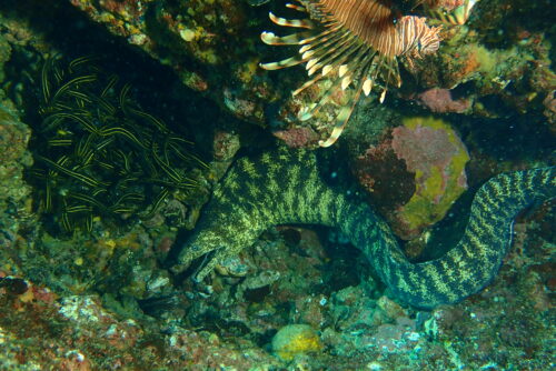 横田はウミウシ探索....していると、ハナミノカサゴ・ウツボ・ゴンズイというトリプルパンチの要注意生物を発見!みなさん観察だけにしましょうね(^^)