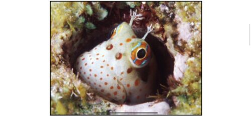 今回のも記念ダイブの方がいらっしゃいますが、モチーフはモンツキカエルウオ