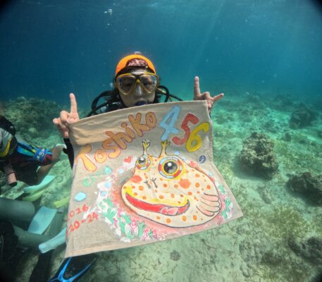 わっしょいダイバーズではビックツアーでの50本、100本、150本、、、もしくはゾロ目、今回のような続きの本数で記念ブラックを作成させていただき特別なお祝いダイブをサポートさせてもらっています。